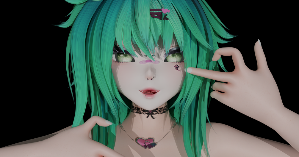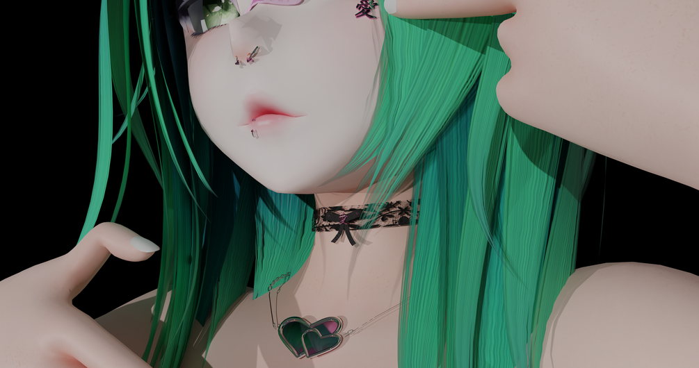 choker,necklace,nose rings,lip ring, hair clips, band-aid, cheek symbol